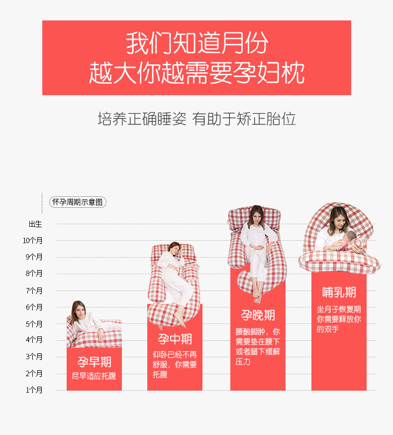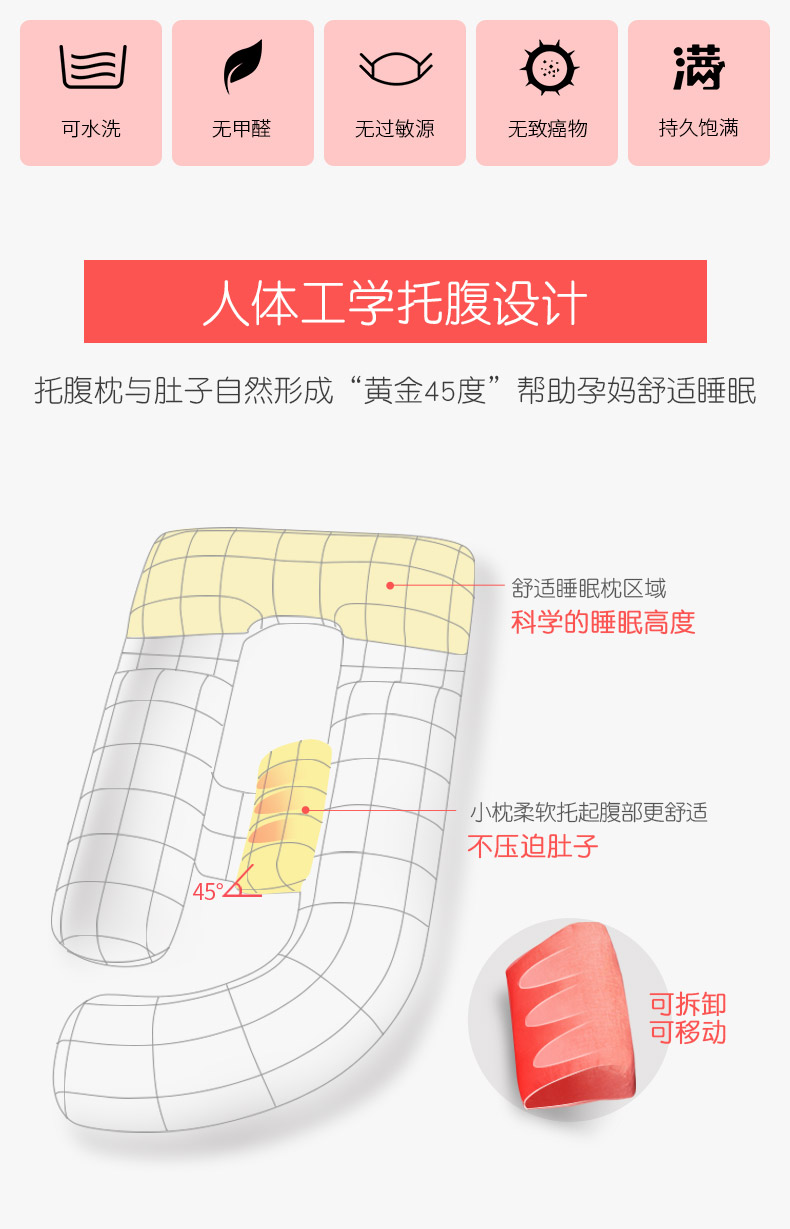 咕呗孕妇枕头护腰侧睡枕侧卧枕靠枕用品u型枕多功能托腹睡觉抱枕 蜜橙色+托腹枕
