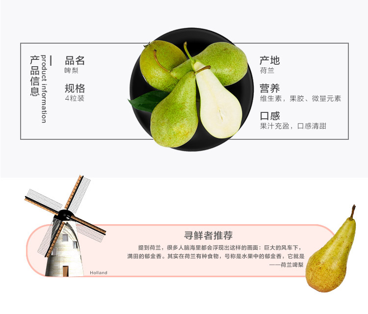 荷兰 进口青啤梨 4个装 大果 单果重约170-220g 新鲜水果