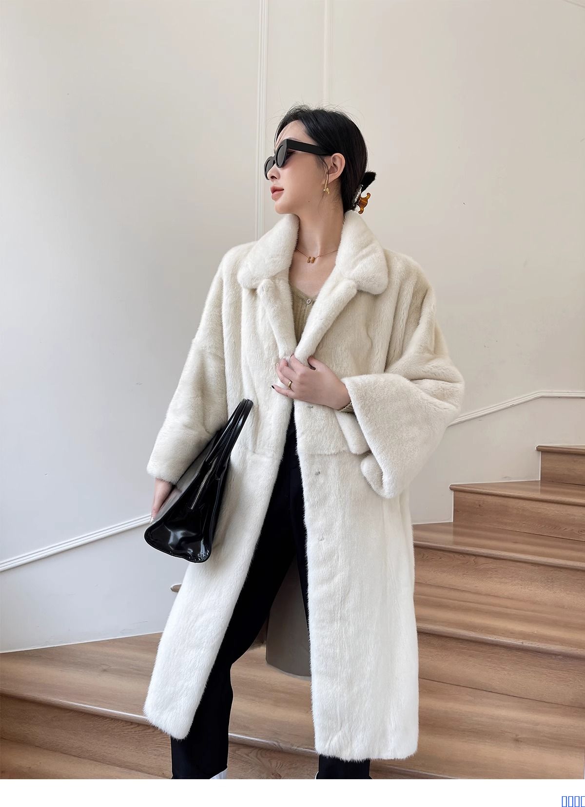 进口紫标天鹅绒十字貂皮大衣中长款气质宽松水貂皮草外套女冬