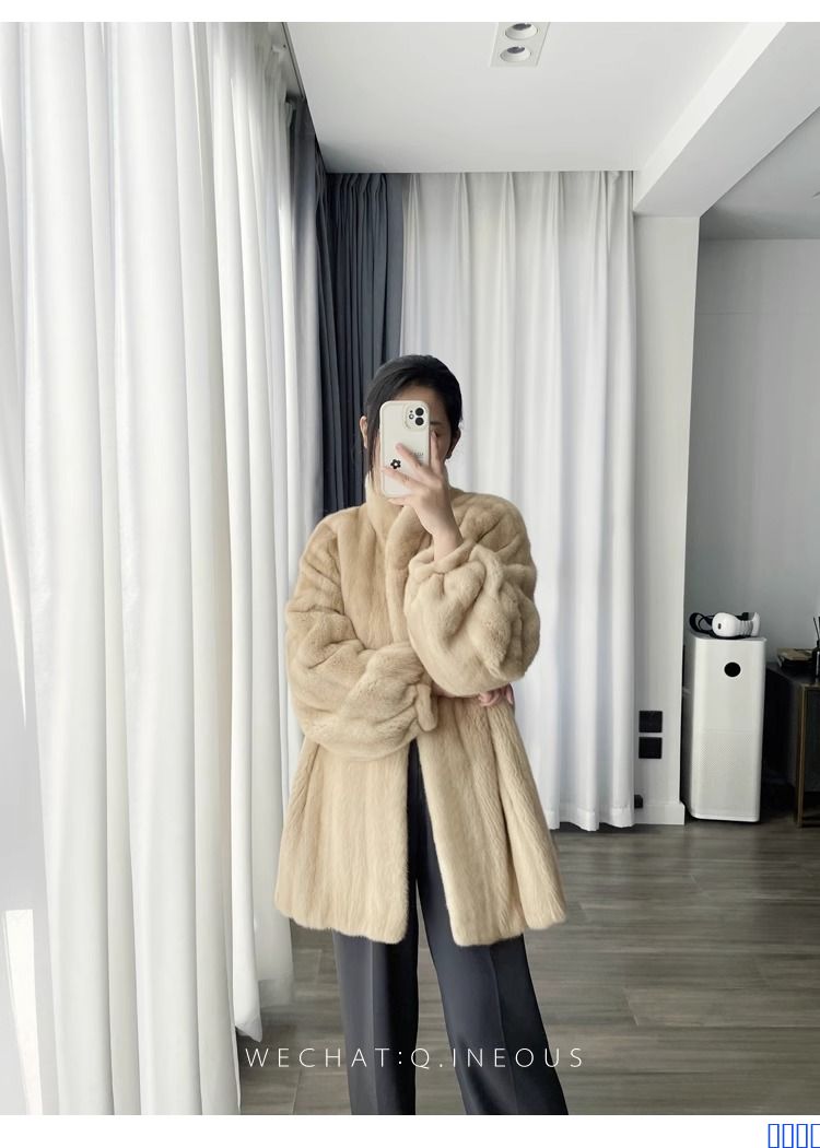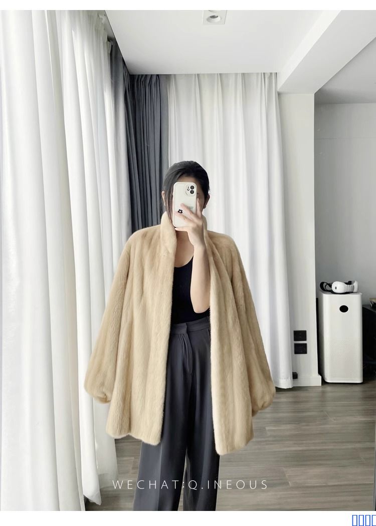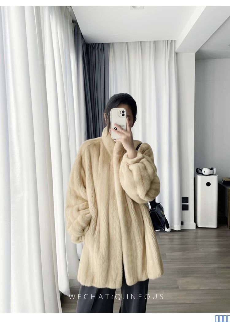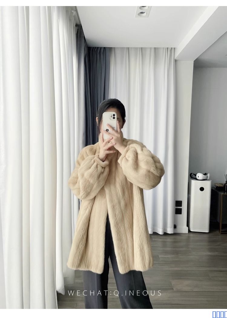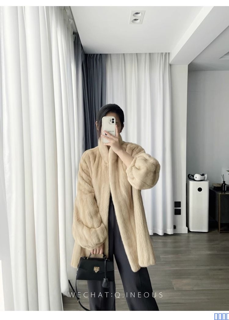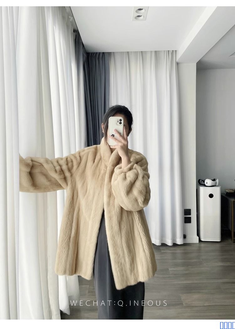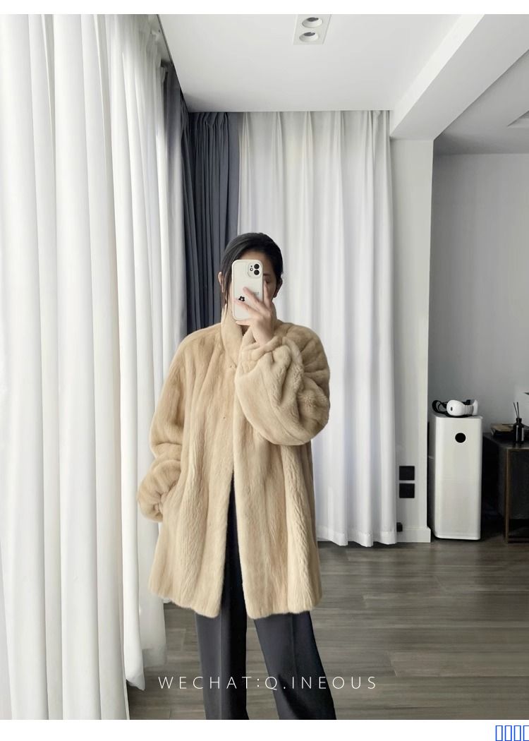 进口全抽水貂皮大衣立领中长款整貂小母貂皮草女