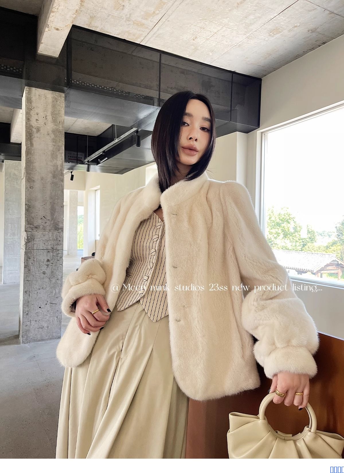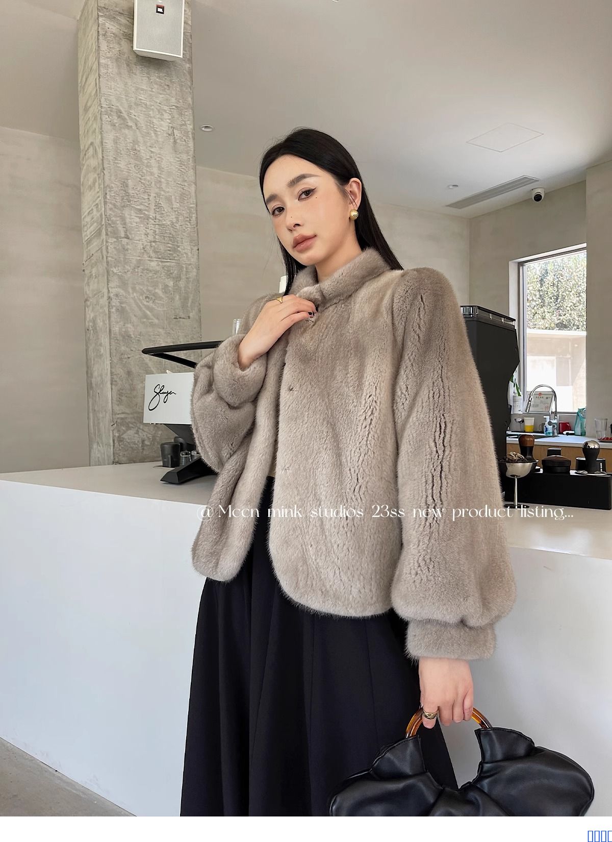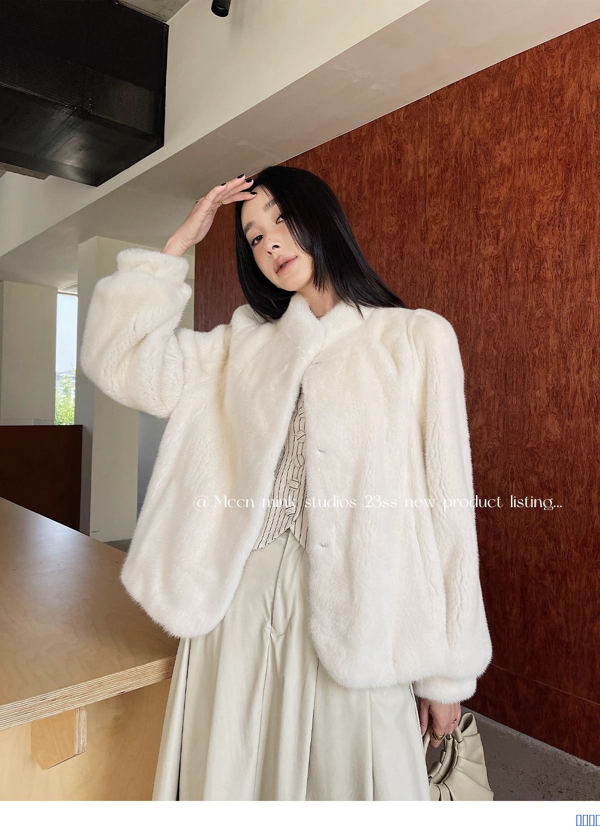 新款冬进口立领整貂天鹅绒貂皮大衣短款年轻水貂毛皮草外套女
