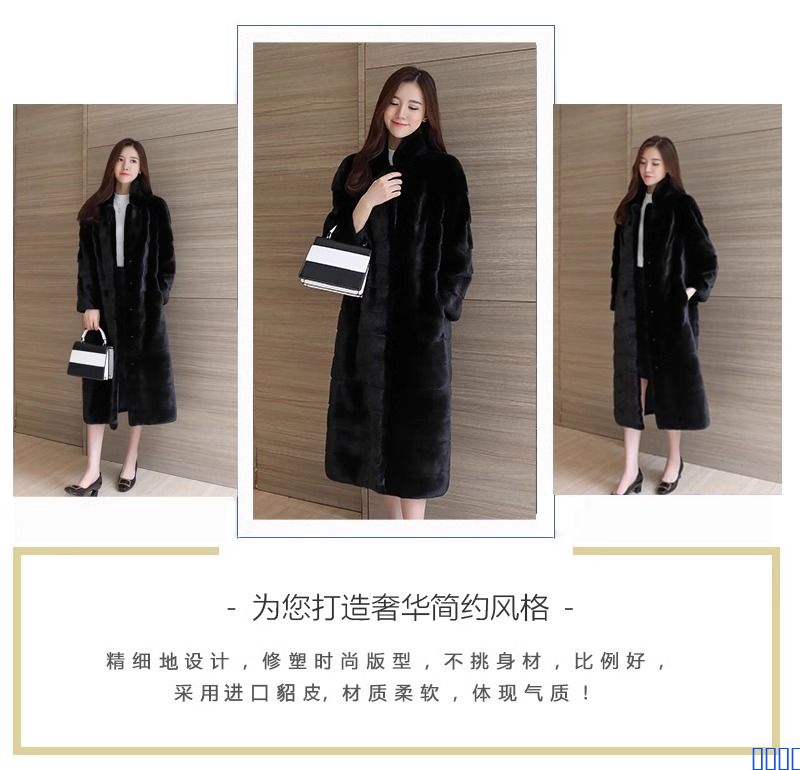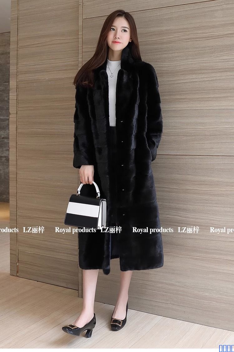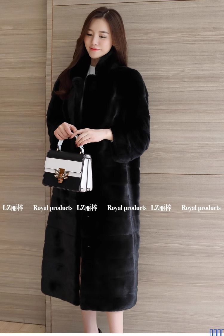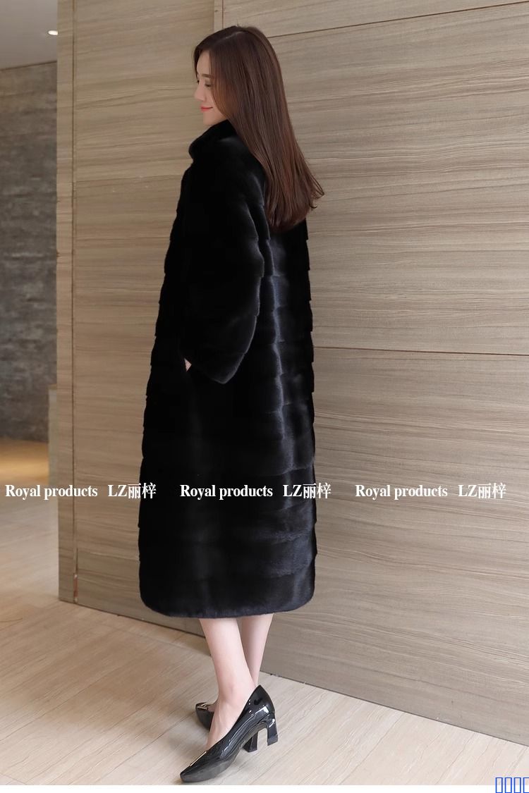 高品质进口天鹅绒整貂大衣水貂皮草长款本黑时尚裘皮女士新款外套
