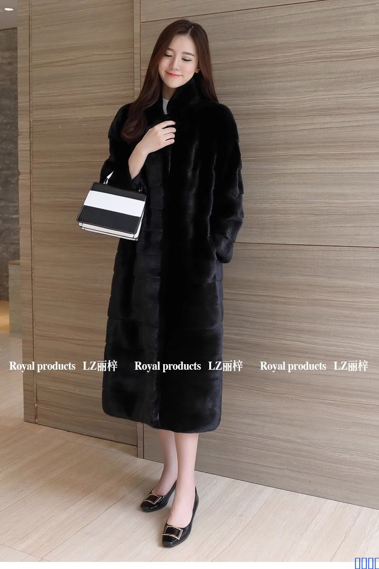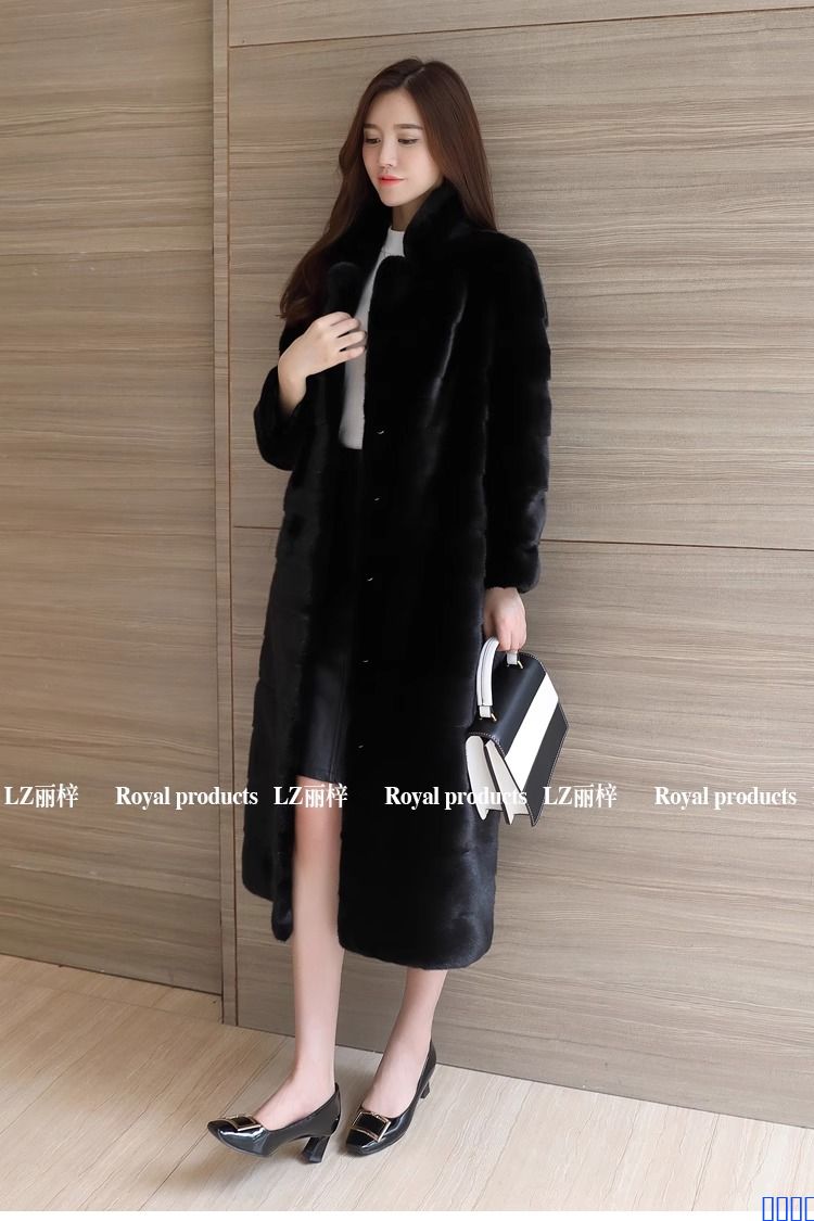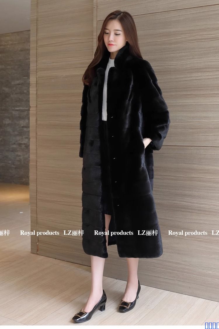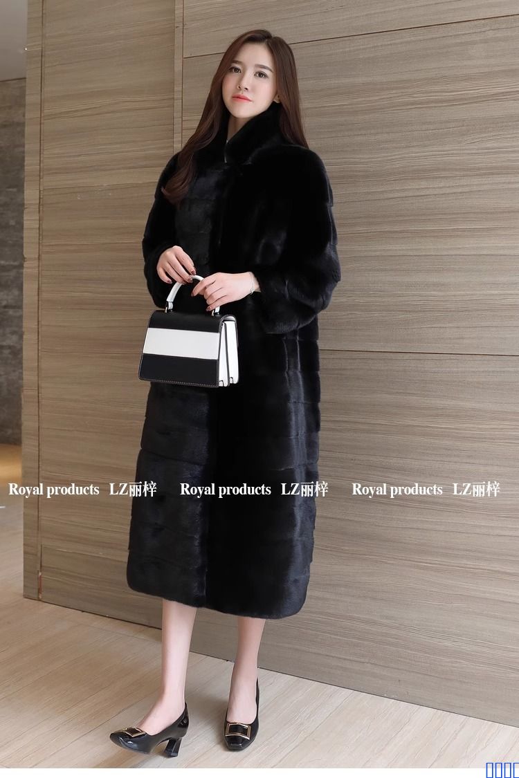 高品质进口天鹅绒整貂大衣水貂皮草长款本黑时尚裘皮女士新款外套