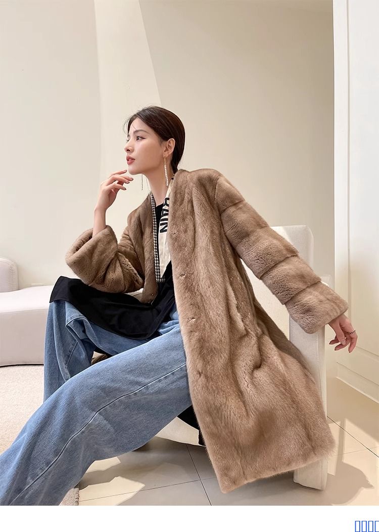 2024冬新款进口天鹅绒立领貂皮大衣女整貂年轻款水貂毛皮草外套女