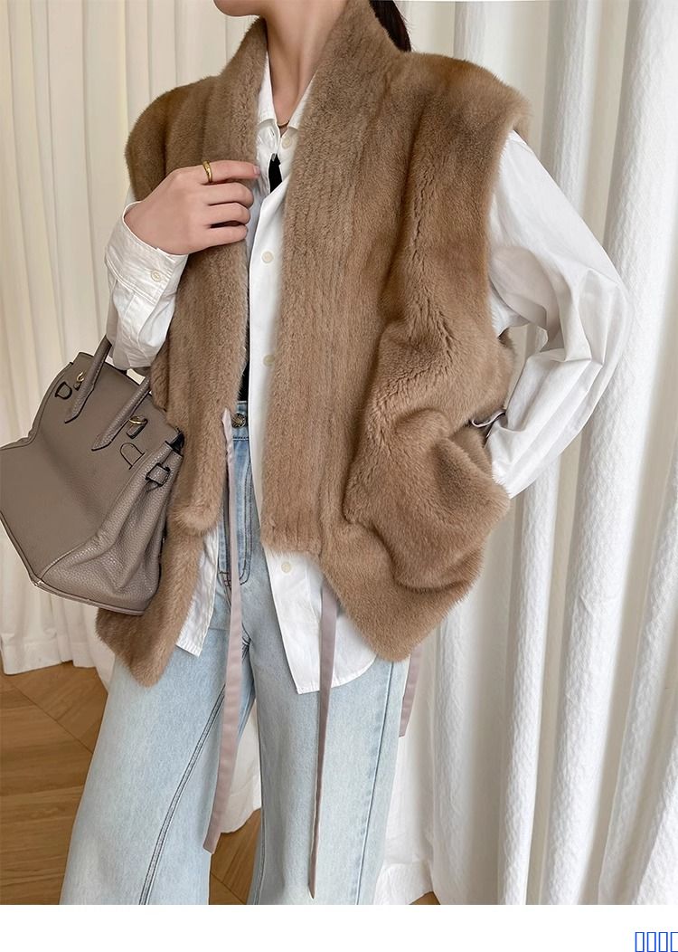 进口丹麦母貂天鹅绒时尚坎肩背心整貂皮大衣水貂毛皮草马甲女新款
