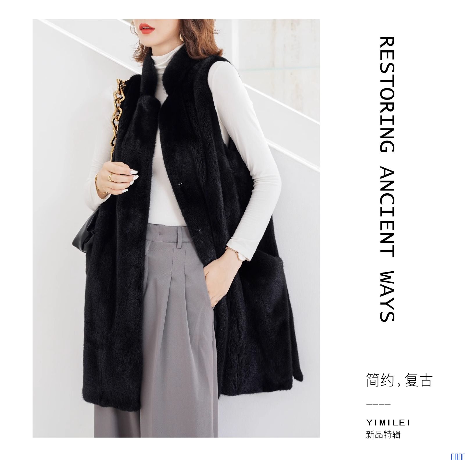 紫标天鹅绒水貂皮马甲女整貂皮草大衣坎肩背心中长外套