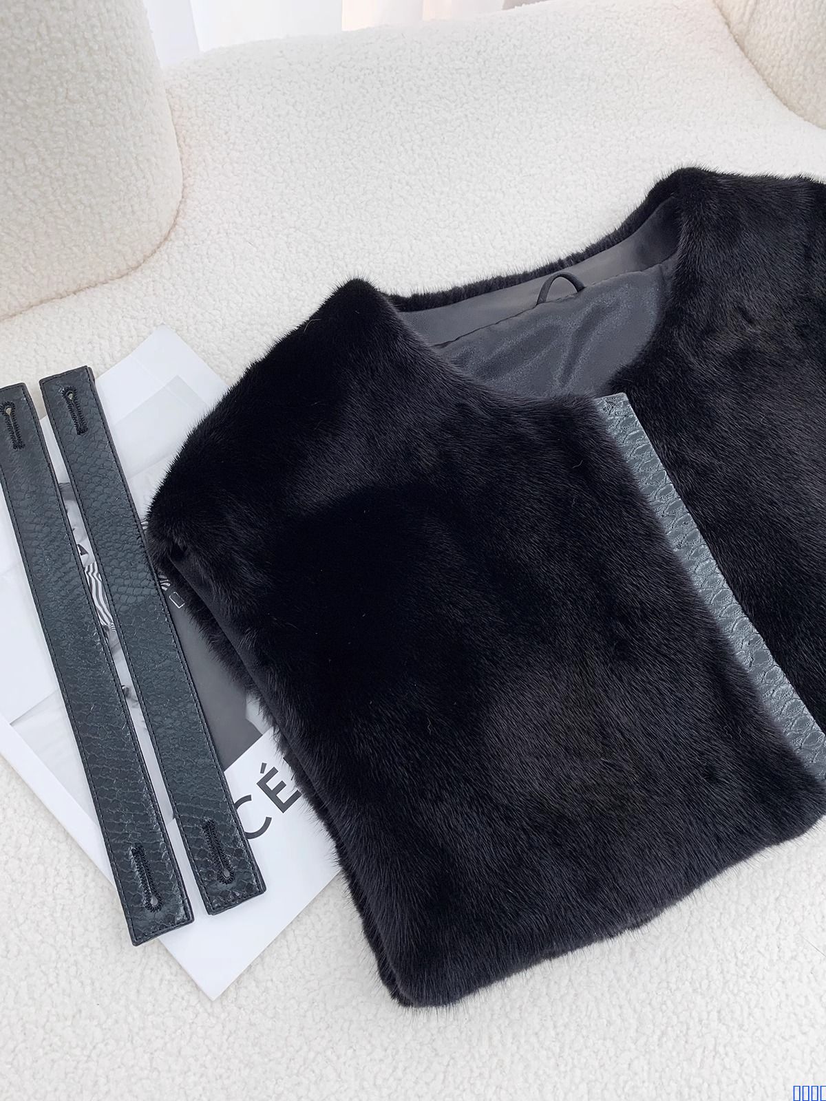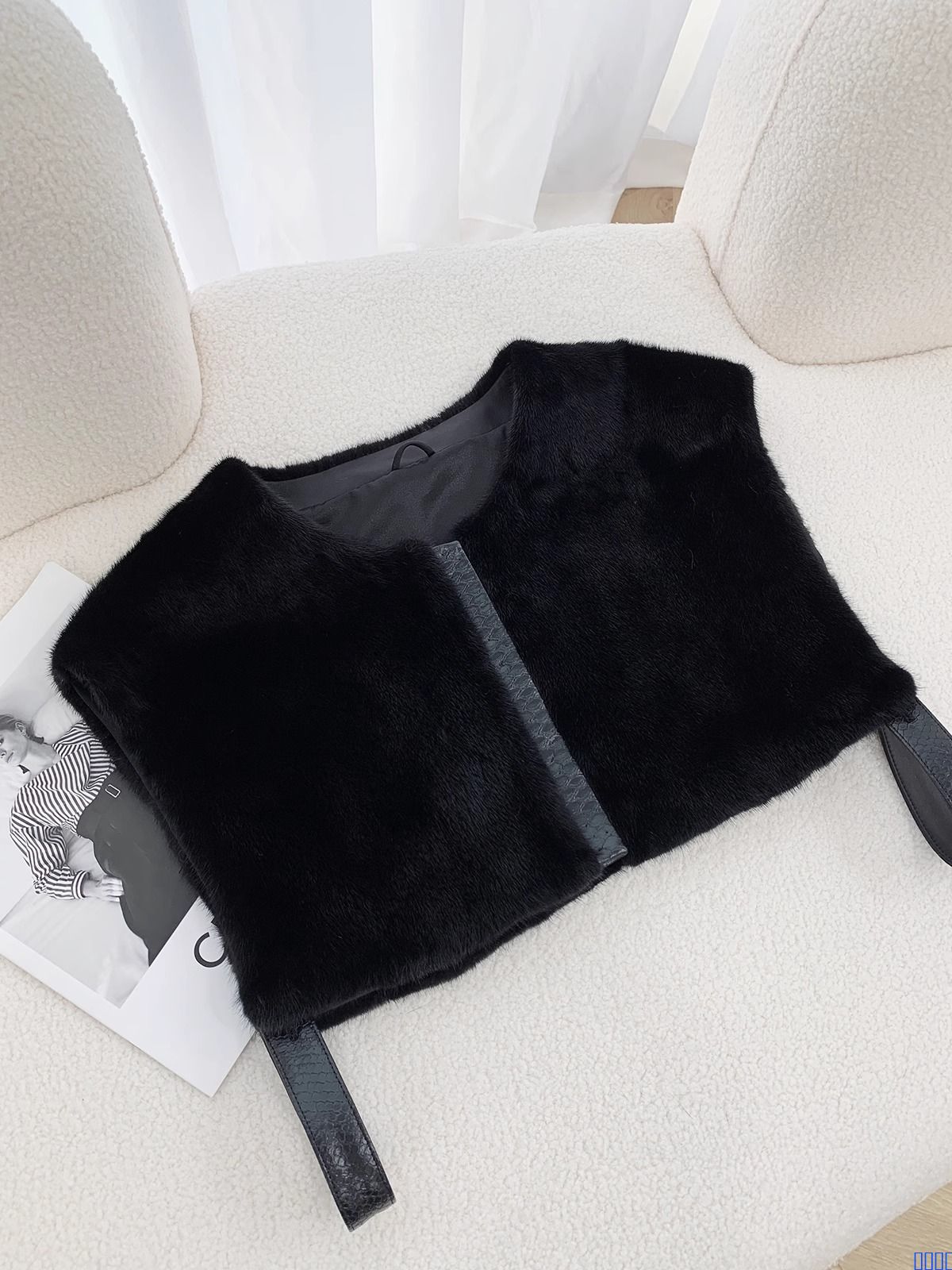 新款进口小母貂披肩短款背心貂皮大衣马甲气质水貂皮草坎肩女