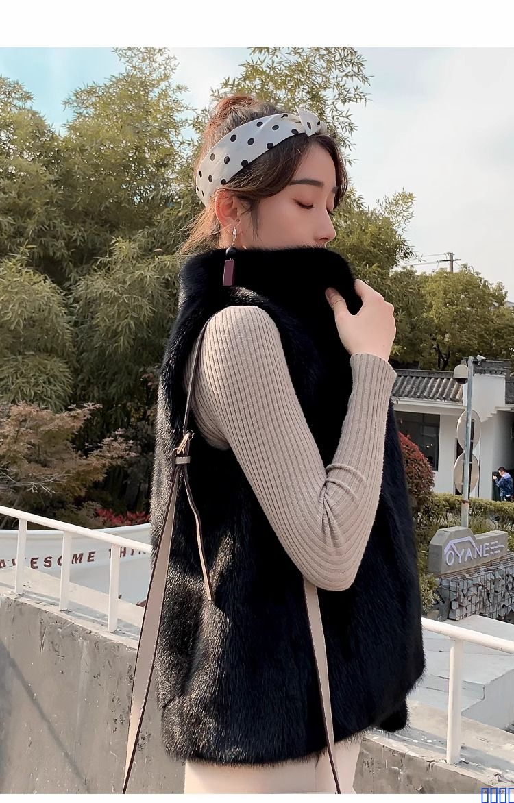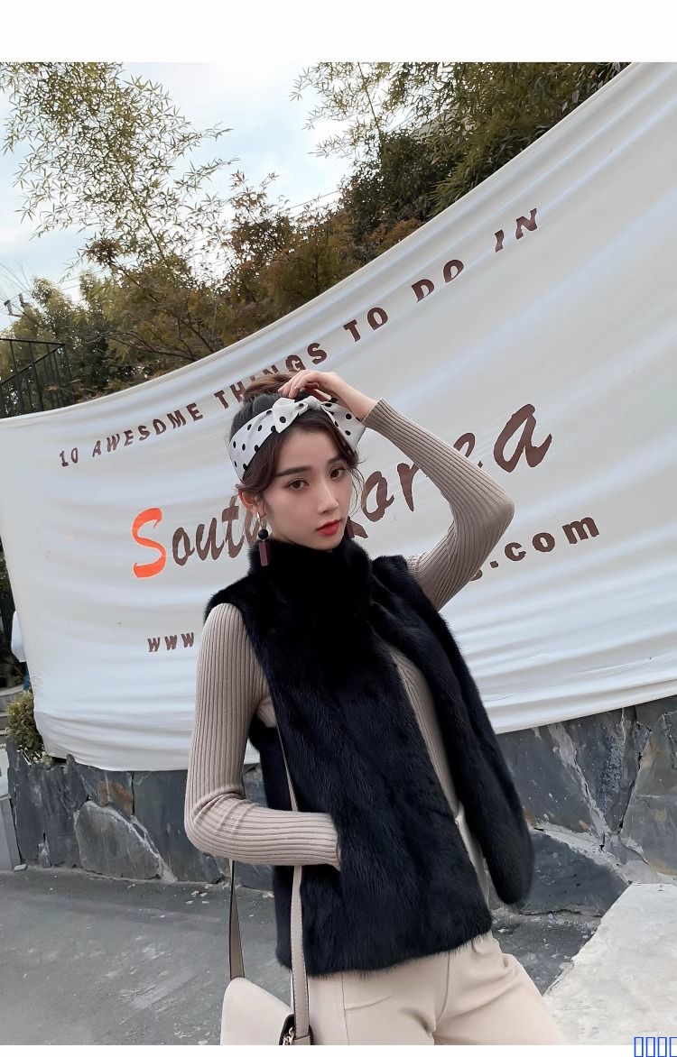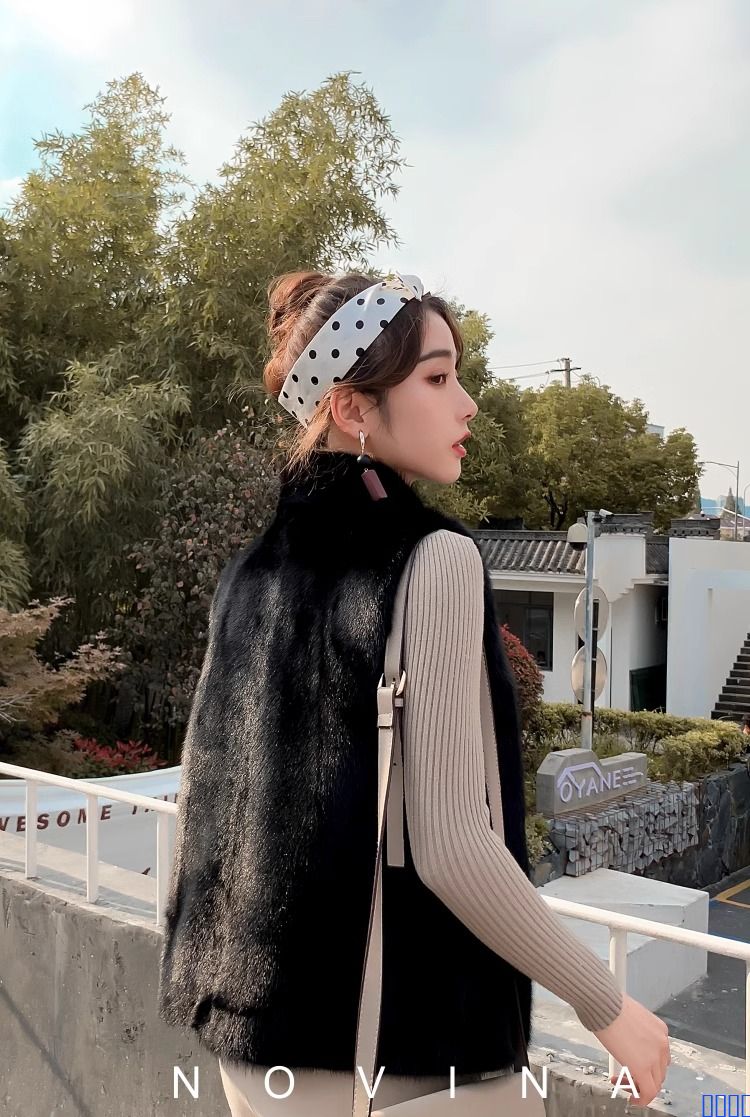 貂皮马甲女短款2024秋冬时尚冬水貂毛立领无袖背心皮草整貂大衣潮