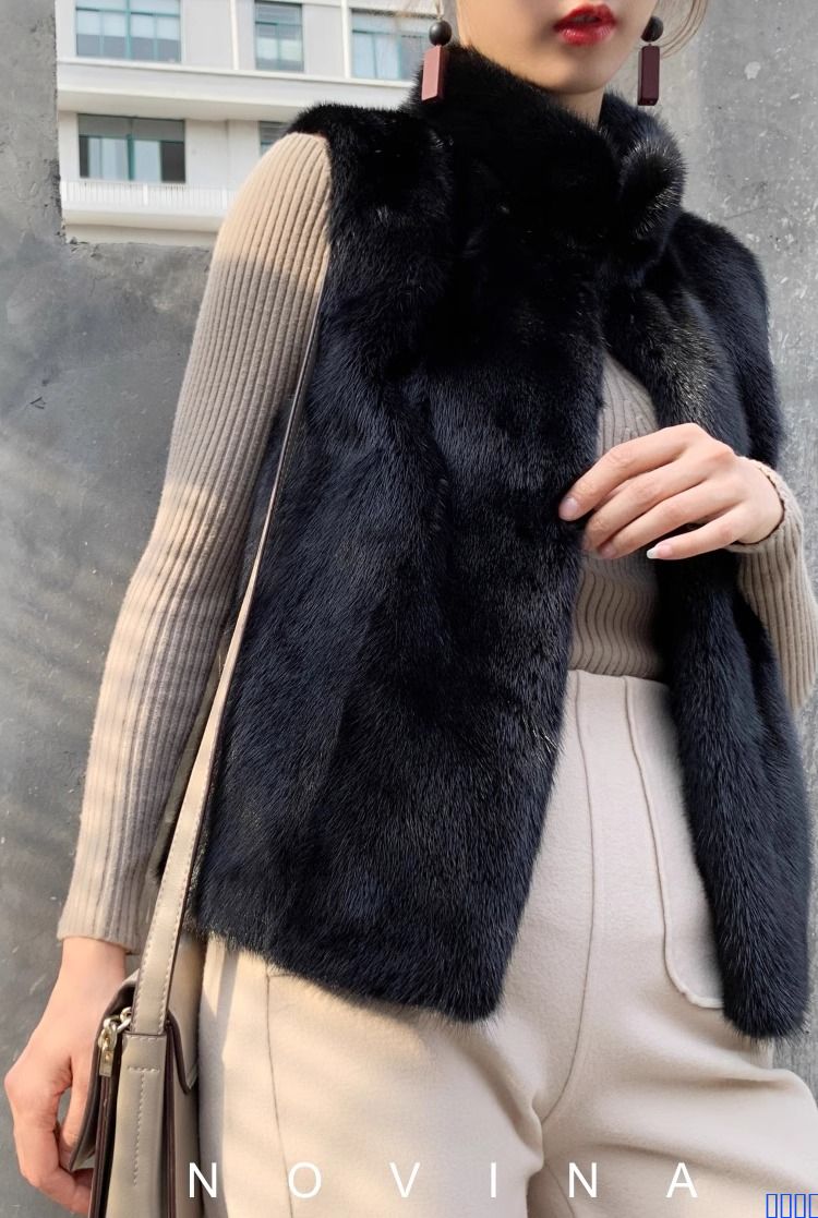 貂皮马甲女2024新款真水整貂皮草背心外套欧货大衣坎肩美拉德