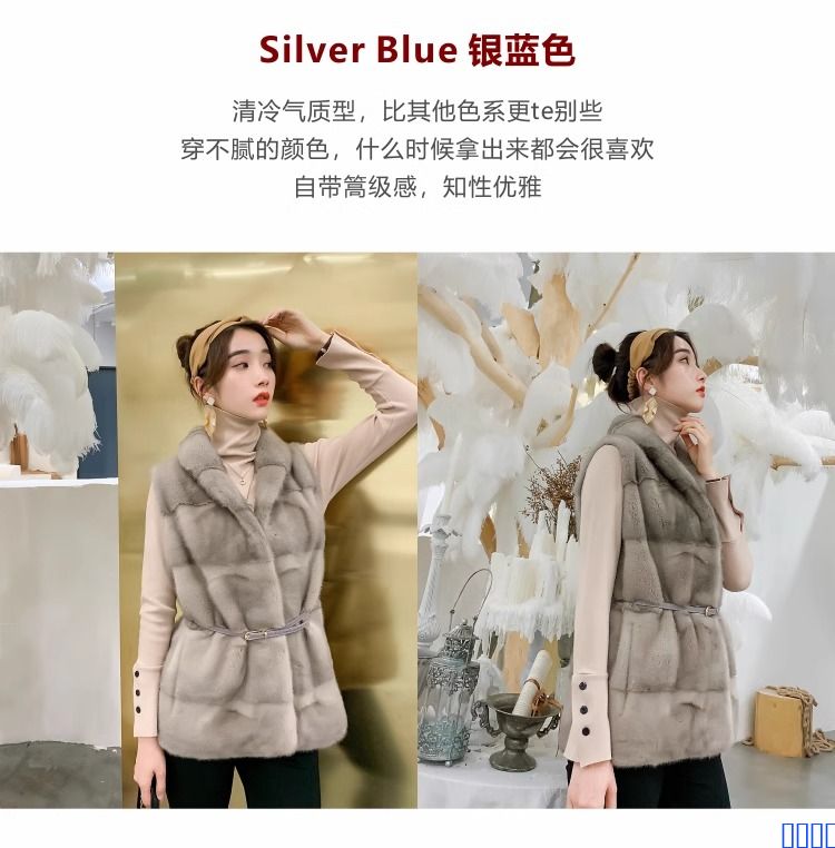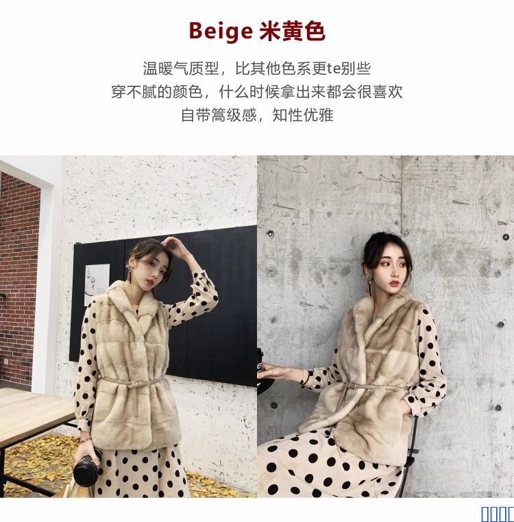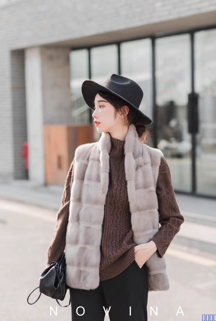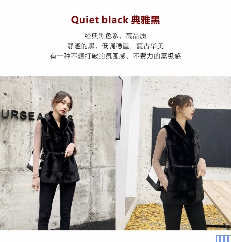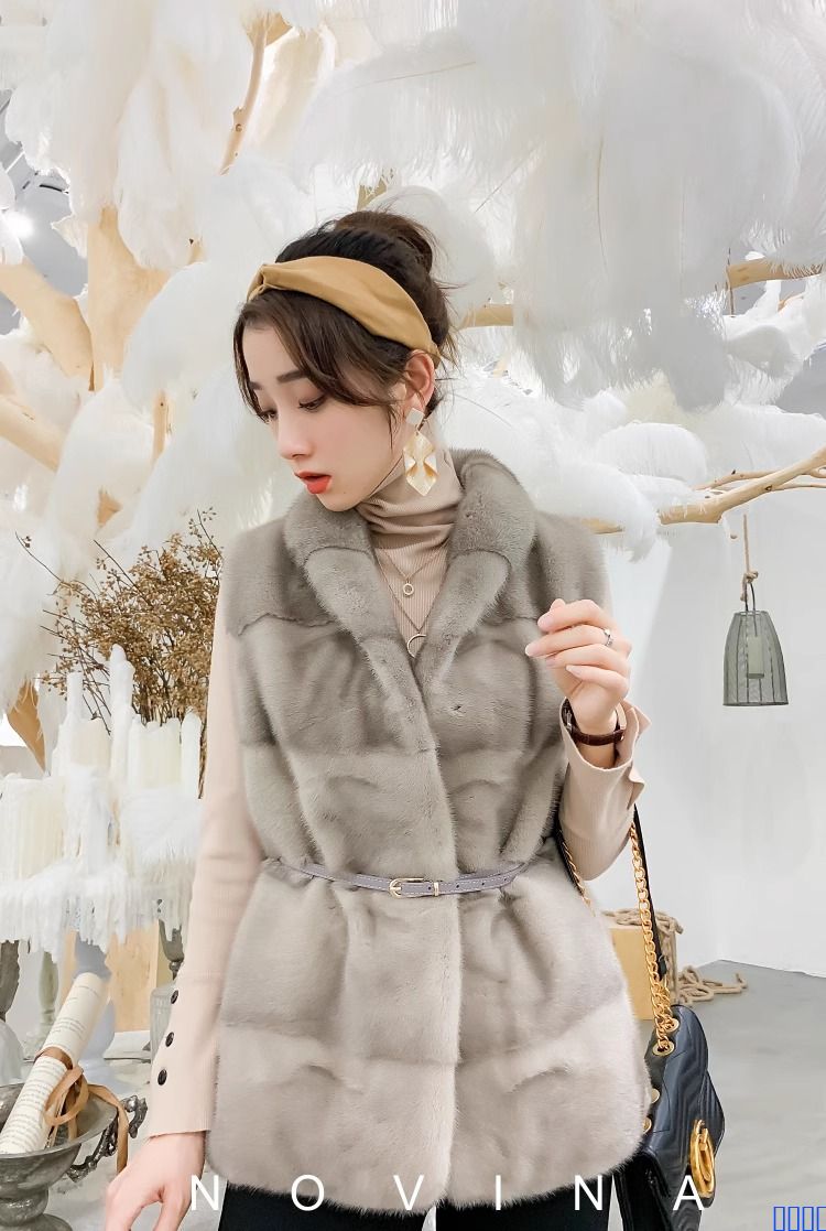 新款进口水貂毛皮草天鹅绒咖啡貂整貂休闲年轻貂皮背心马甲外套女