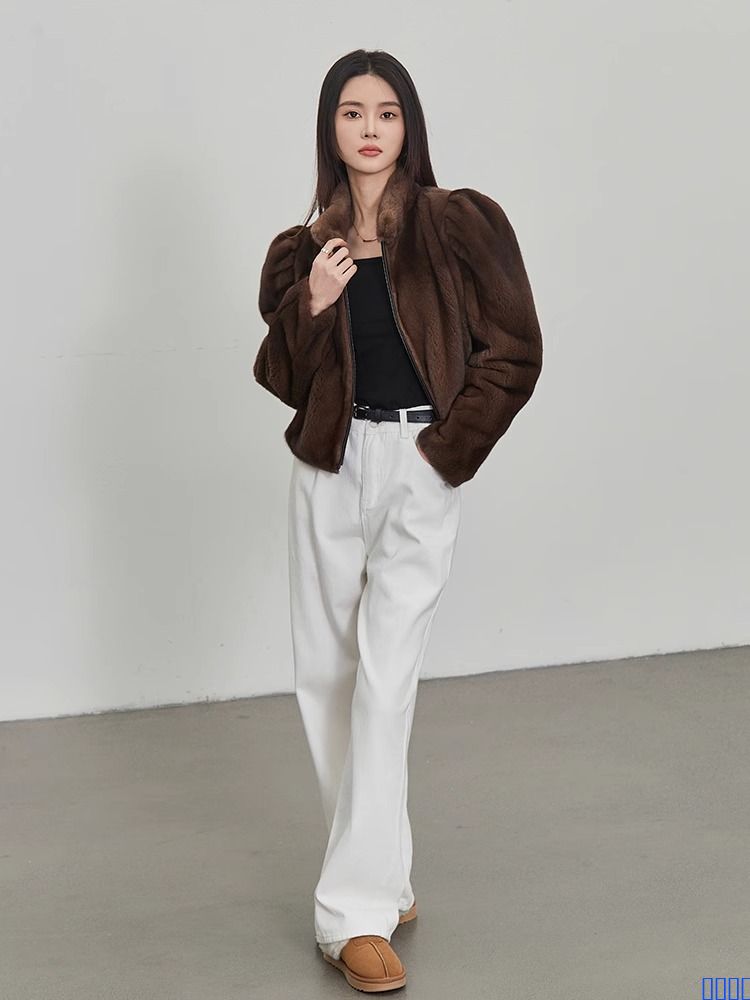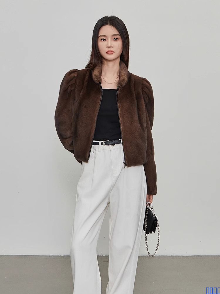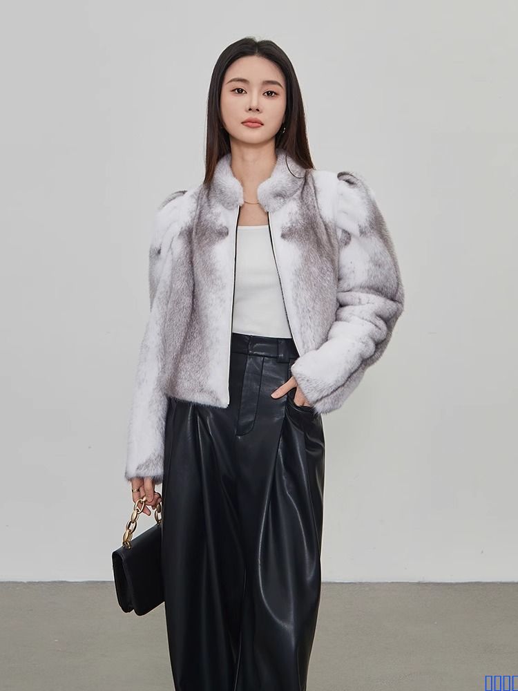 新款立领十字貂皮大衣女天鹅绒整貂水貂皮草外套年轻时尚款