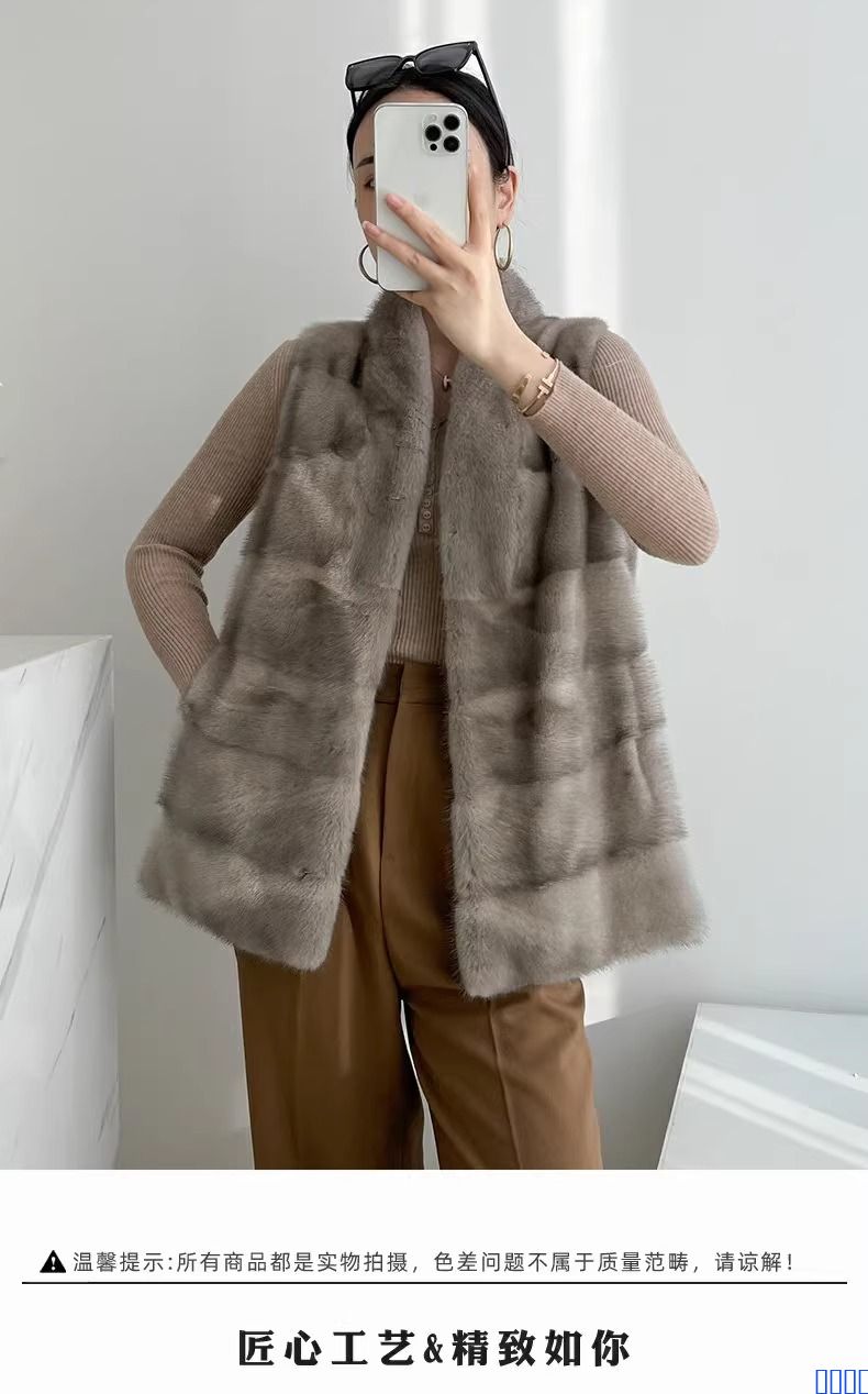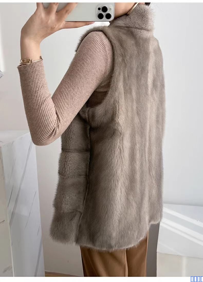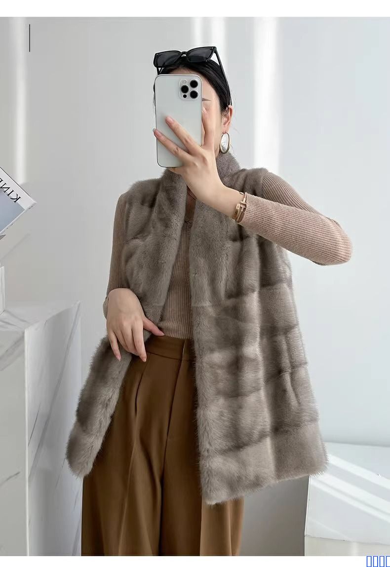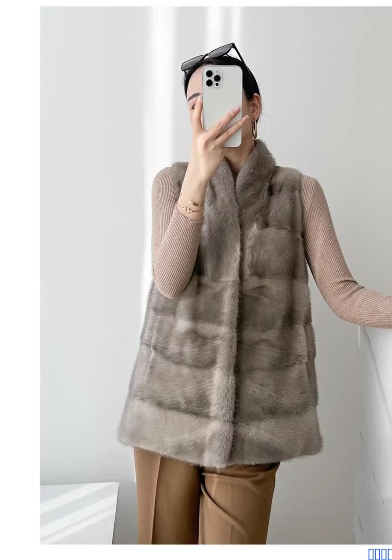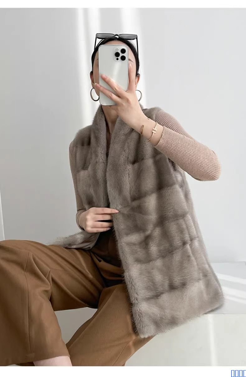 水貂皮大衣女马甲整貂中长款皮草外套貂毛2023年冬季新款背心时尚