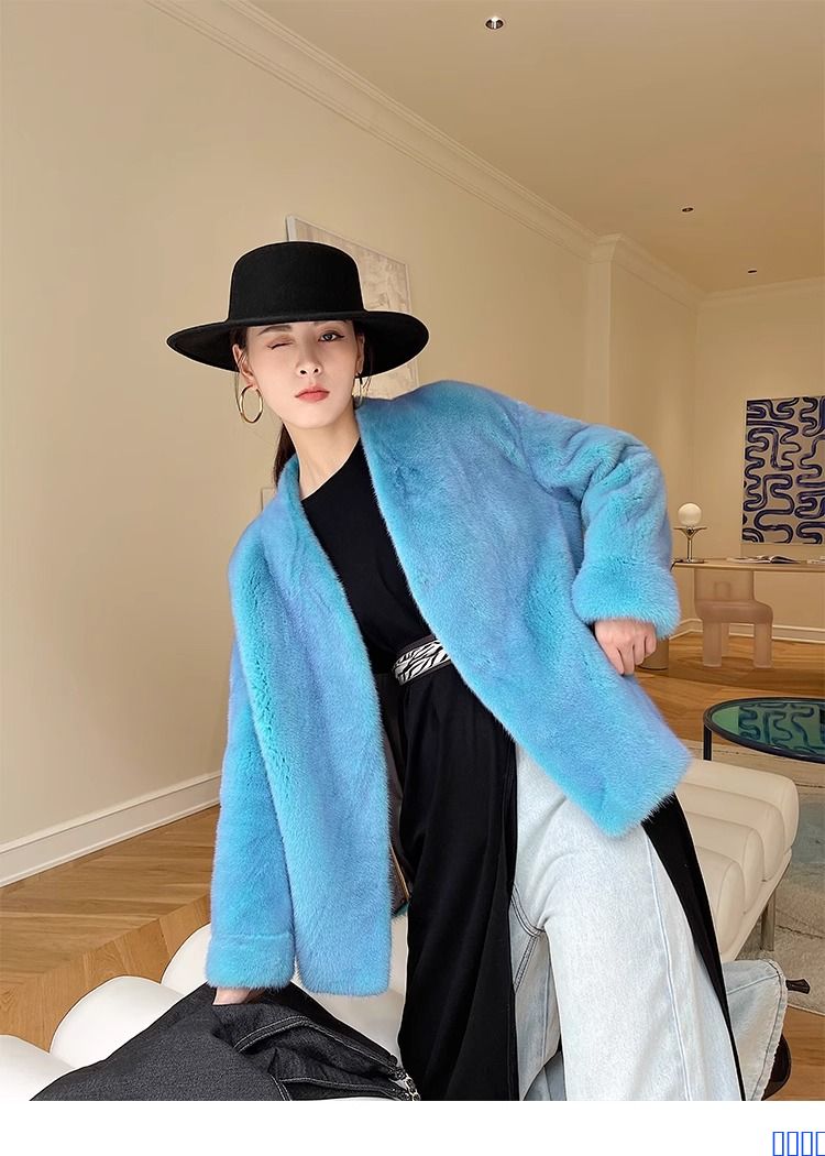 新款进口整貂天鹅绒年轻款渐变彩貂皮大衣女洋气水貂皮草外套