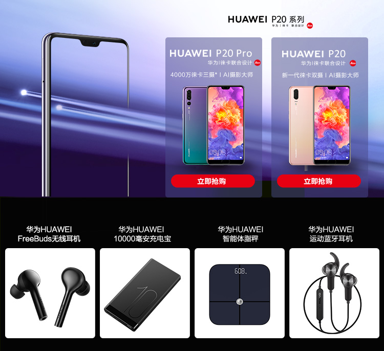 华为 HUAWEI P20 AI智慧徕卡双摄全面屏游戏手机 6GB+64GB 极光色 全网通移动联通电信4G手机 双卡双待