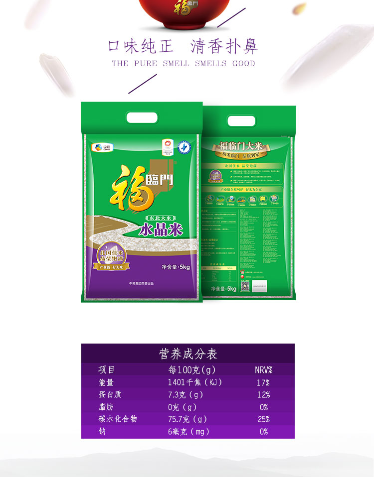 福临门 东北大米 水晶米 中粮出品 大米5kg